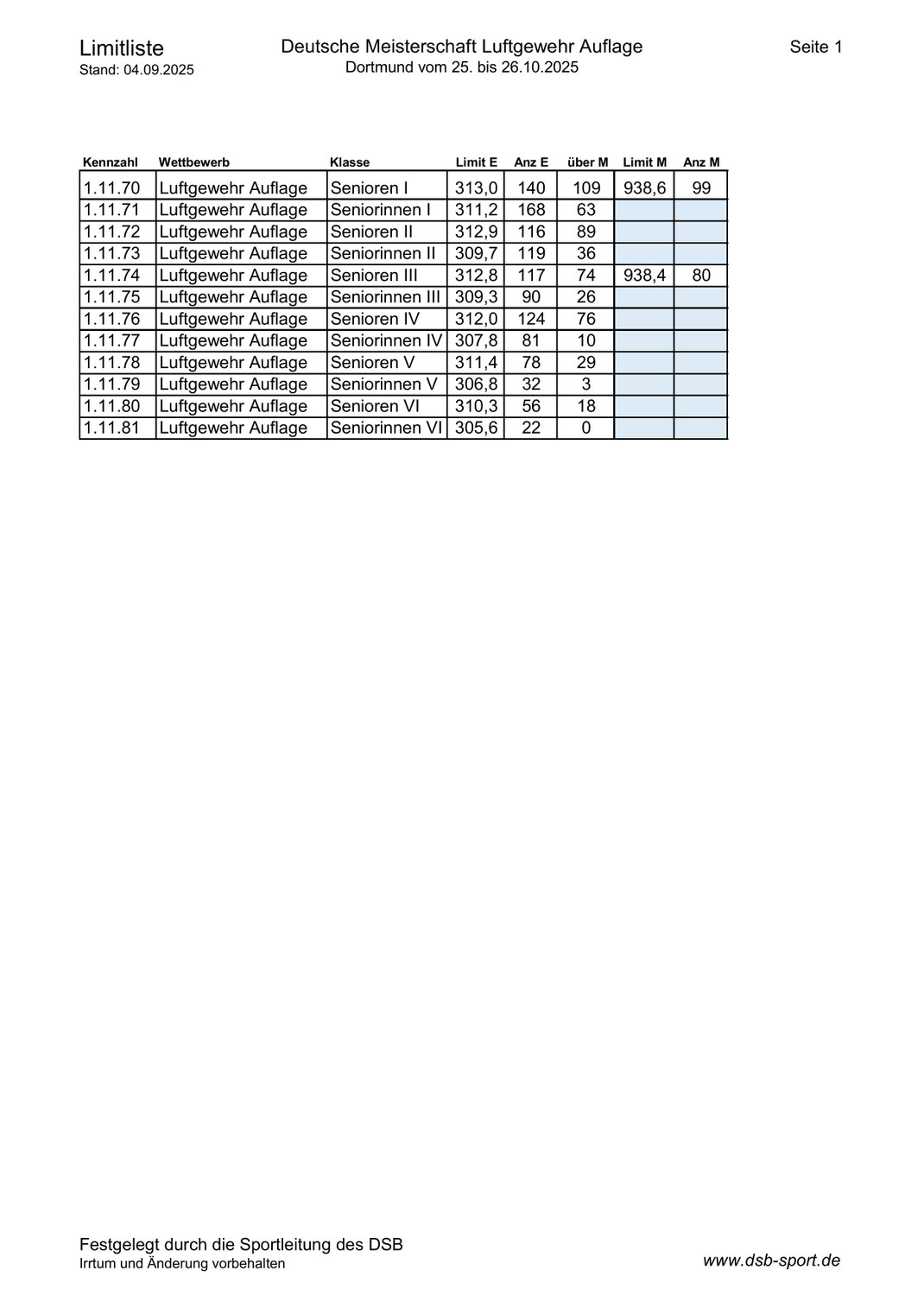 2025 Rangliste LG Auflage